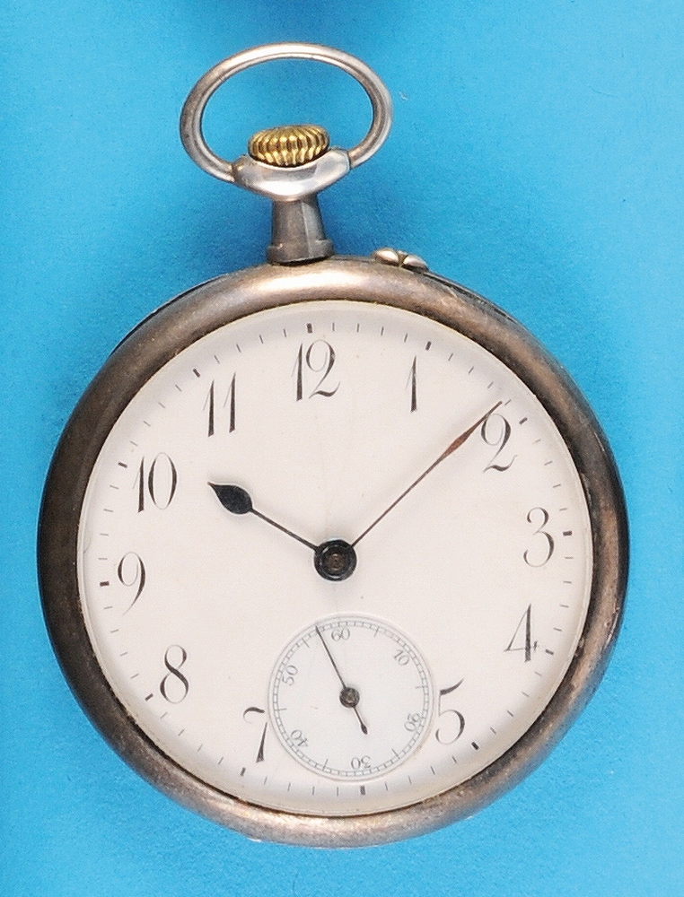 Silbertaschenuhr mit Ankergang, glattes 900er-Silbergehäuse,
