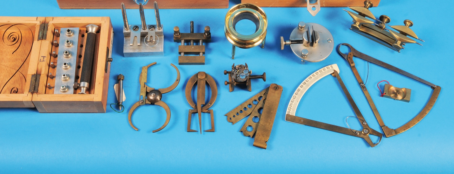 u.a. kleine Standlupe, Eingriffszirkel, Werkhalter, Federwinder, Lehren etc.