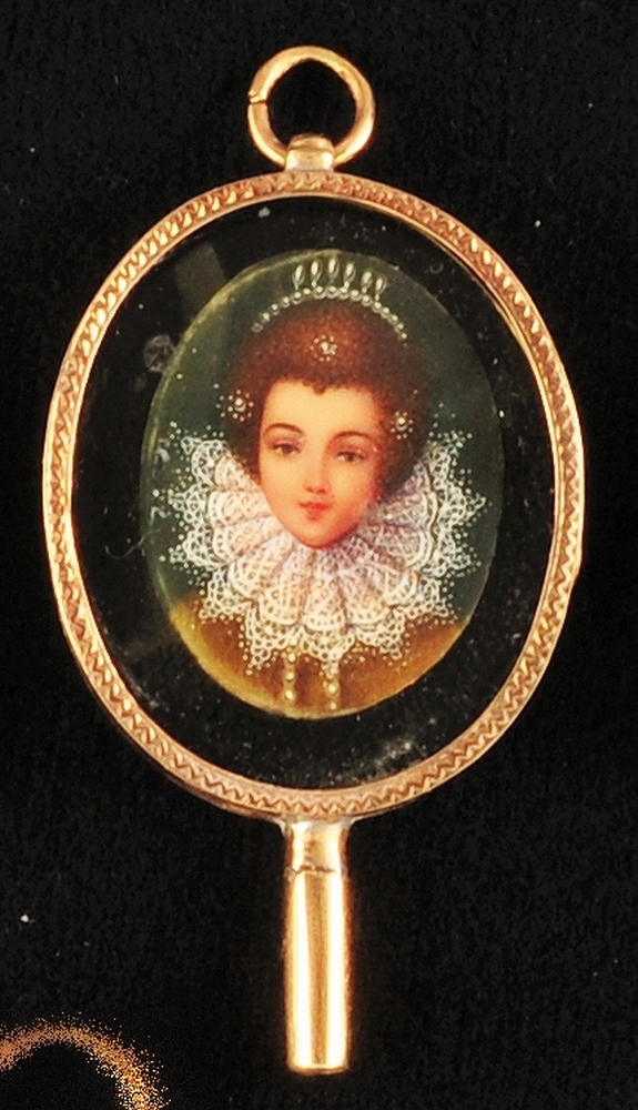 ovale 14-ct.-Goldfassung zum Öffnen, ovales Medaillon mit Darstellung eines Damen-Portrait (1396), M = 31 x 55 mm